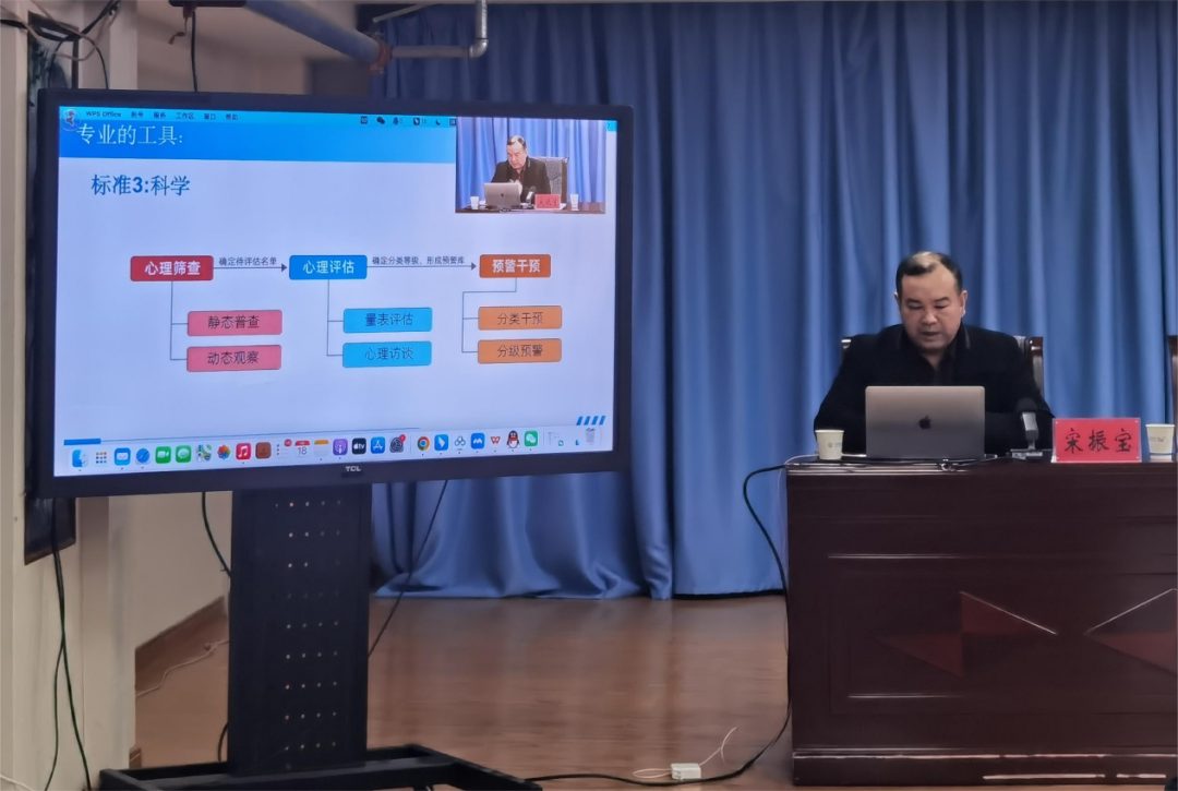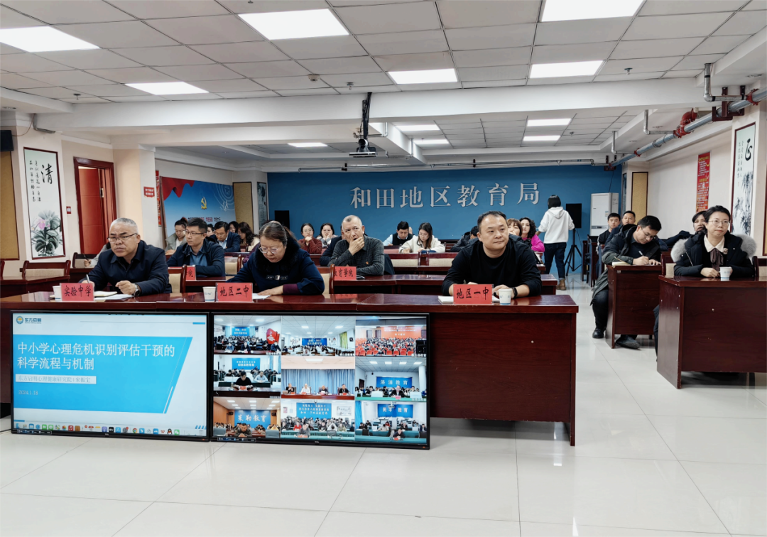 宋振宝院长在会议现场以《中小学心理危机识别评估干预的科学流程与机制》为主题开展了培训讲座,发放了《中小学心理危机筛查评估干预实操手册》,详细分析了目前学生心理健康教育工作中存在的困难,对应的解决办法,为和田地区开展学生心理健康工作理清了思路,讲明了方法,反响十分热烈。