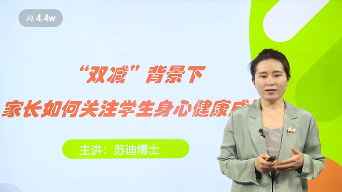 苏迪博士主要从“双减政策的解读”“双减政策下家长面对的5点困惑”“双减政策下家长该如何做”等几个方面进行了讲解。更是提出了“打破认知壁垒,树立正确教育观”“打破固有模式,重建亲子关系”“打破单一模式,系统中看待孩子”“提升思维格局,改善亲子关系”等多点解决方式,为家长更好地关注孩子身心健康成长提供了多种方式和方法。